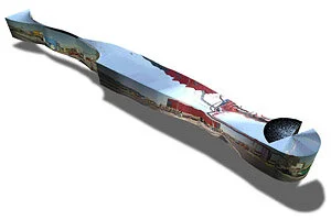 Eddie Elliott appears to be one of the first people to have researched how slit-scan techniques could be applied to digital video. As early as 1992, he describes a variety of both utilitarian and playful uses of digital slit-scans, which he called "Video Streamers". Elliott principally used Streamers as part of a larger visual interface system for editing and manipulating video; later, however, he developed an educational/artistic exhibit (shown at the San Francisco Exploratorium) which computed Streamers from live participant video. Elliott also created playful transformations of Streamers, such as the folding paper box template shown above. Elliott's work is extensively documented in his 1994 PhD Thesis, which he produced in the Interactive Cinema Group of the MIT Media Laboratory.