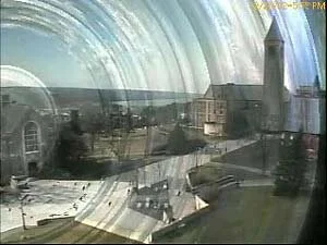 The team's "Time Maps" are images and/or videos in which slit-scans are compiled from long-term time-lapse imagery. The source strips may be compiled horizontally (as in the top example above), or along any other axis; one unusual contribution is their so-called "tree ring" or radial time-maps, in which time-displacement is mapped to radial distance from an arbitrary location in the image. Another contribution is their "tiled views" or calendric time-maps, which, they write, "are particularly well suited for revealing long-term trends and periodic events." Terry's team typically uses video from outdoor web-cams as source material, thus effectively visualizing the progress of day/night cycles, weather patterns and the change of seasons.